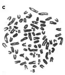 - ↑ M. Vujoševic and J. Blagojevic: B chromosomes in populations of mammals. 2004. Cytogenetic and Genome Research 2004;106:247–256. doi:10.1159/000079295