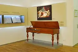 Seit 1973 werden Tasteninstrumente in einem kleinen, ca. 20-minütigen Konzert stündlich den Besuchern vorgeführt.[39] Zu den heute vorgeführten Instrumenten zählen zwei Orgelpositive (Schweiz, ca. 1750[40] und Thüringen, ca. 1650), ein gebundenes Clavichord (um 1770),[41] ein Spinett (Johann Heinrich Silbermann (ein Neffe von Bachs Freund Gottfried Silbermann), Straßburg, 1765)[42] und die Kopie eines Cembalos von Johann Heinrich Harrass (Breitenbach/Thüringen, 1705). Die Orgeln werden nicht elektrisch betrieben. Während das Schweizer Orgelpositiv vom Spieler mittels eines Trethebels mit Wind versorgt wird, muss sich beim Thüringer Orgelpositiv immer ein Besucher bereitfinden, den Balg zu treten. Dieses Instrument ist das älteste bekannte erhaltene thüringische Orgelpositiv und hatte ab 1714 als Kirchenorgel in Kleinschwabhausen gedient; damals war Bach Hoforganist im 15 Kilometer entfernten Weimar. Der mit Bach befreundete Hoforgelmacher Heinrich Nicolaus Trebs setzte die Orgel 1724 und 1740 instand. Bachs Schüler und Nachfolger als Hoforganist Johann Caspar Vogler prüfte sie 1738, 1740 und 1744. Im Museum wird daher vermutet, dass Bach das Instrument ebenfalls kannte.[43]