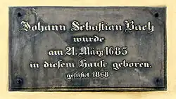 - ↑ Vgl. zu der Geschichte der Gedenktafel Ilse Domizlaff: Das Bachhaus Eisenach. S. 12.
