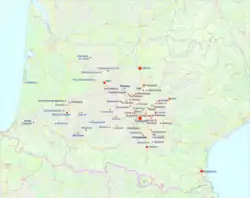 Orte mit gotischen Backsteinbauten in Südfrankreich. Nach Möglichkeit ist der Ortsname mit dem Bauwerk oder einem besonders wichtigen von mehreren Bauwerken verlinkt, oder mit den Kategorie (Bildersammlung) zu diesem Gebäude in Wikimedia Commons. Die dicht gedrängten Backsteinorte in Französisch-Flandern sind in der Spezialkarte für die Départements Nord und Pas-de-Calais beschriftet. |