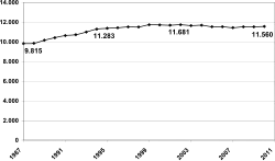 | Einwohner | 6.069 | 6.964 | 9.815 | 10.416 | 11.371 | 11.708 | 11.535 | 11.560 | 11.601 | 10.548 | 10.599 | 10.661 | 10.636 |