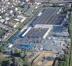 1956 wurde der Grundstein zum Bau des Mingolsheimer Werkes des Unternehmens Fuchs-Bagger aus Ditzingen bei Stuttgart gelegt. Damit begann ein wirtschaftlicher Aufschwung. Bis zu 1000 Menschen fanden hier in den späten Nachkriegsjahren Arbeit. 1985 übernahm das Langenburger Unternehmen Karl Schaeff GmbH & Co. die Johannes Fuchs KG Maschinenfabrik in Ditzingen und somit auch die ortsansässige Zweigstelle. Nach der erneuten Unternehmensübernahme 2002 durch den amerikanischen TEREX-Konzern aus Westport (Connecticut) firmiert das Unternehmen unter Terex/Fuchs. Die Umschlag- und Lademaschinen mit dem himmelblauen Anstrich sind auf der ganzen Welt anzutreffen.