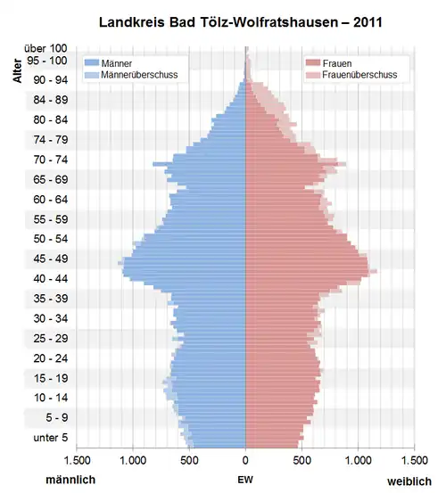 Bevölkerungspyramide für den Kreis Bad Tölz-Wolfratshausen (Datenquelle: Zensus 2011[6])