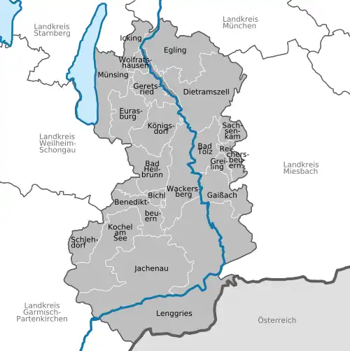 Starnberger SeeAmmerseeÖsterreichLandkreis EbersbergLandkreis Garmisch-PartenkirchenLandkreis Landsberg am LechLandkreis MiesbachLandkreis MünchenLandkreis RosenheimLandkreis StarnbergLandkreis Weilheim-SchongauWolfratshauser ForstPupplinger AuPupplinger AuBad HeilbrunnBad TölzBenediktbeuernBichlDietramszellEglingEurasburg (Oberbayern)GaißachGeretsriedGreilingIckingJachenauKochel am SeeKönigsdorf (Oberbayern)LenggriesMünsingReichersbeuernSachsenkamSchlehdorfWackersbergWolfratshausen
