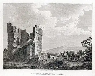 ![]() Baggotrath Castle 1792 (Zeichnung von Francis Grose) | ||