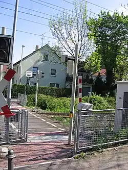 - ↑ Die letzten Bahnübergänge mit Leuchteschrift "2 ZÜGE". In: Drehscheibe. Band 38, Nr. 304, Juni 2020, ISSN 0934-2230, ZDB-ID 1283841-X, S. 98–100.