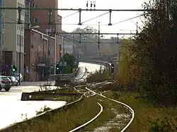 An den Bahnhof waren ein Bahnbetriebswerk und die Hauptwerkstätte von Statens Järnvägar (SJ) angeschlossen. Der Bahnhof wurde am 1. Dezember 1860 für den Personenverkehr eröffnet und 1929 geschlossen.[1] Danach wurde die Anlage bis zur endgültigen Betriebseinstellung 1998 als Güterbahnhof genutzt. Die Gleisanlagen wurden weitgehend abgerissen. 2018 waren nur noch eine Anschlussgleis sowie einige Freileitungsmasten und das ehemalige Frachtterminalgebäude am Kai vorhanden.