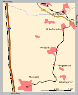- ↑ a b Nach Eröffnung des Regionalverkehrs auf der ICE-Strecke nach Ingolstadt: Täglich Rekordfahrten nach Allersberg. In: Nürnberger Zeitung. 24. November 2006.