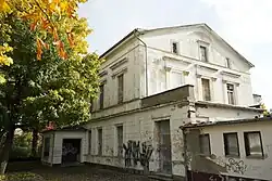 Das Empfangsgebäude aus der Eröffnungszeit des Bahnhofs war ein dreiteiliger klassizistischer Bau. Nach der Verlagerung des Bahnbetriebs zum heutigen Bahnhof wurde es als Hotel genutzt.