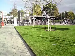 ![]() * im Vordergrund Gleise und Bahnsteige, * links hinten das Empfangsgebäude mit den Treppenabgängen aus den 1980er Jahren, * rechts Neubauten auf dem ehemaligen Güterbahnhof Der Bahnhof Hamburg-Blankenese