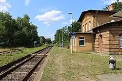 Im Dezember 2012 wurde das Zugangebot deutlich reduziert, nachdem das Land Brandenburg weniger Verkehr auf der Strecke bestellt hat. Seitdem bedienten montags bis freitags nur noch zwei, am Wochenende drei Zugpaare den Bahnhof. Betreiber der Züge ist die Hanseatische Eisenbahn (HANS). Die Linienbezeichnung wurde zu RB 73 vereinheitlicht.[10] Im Jahr 2020 wurde das Zugangebot montags bis freitags wieder auf vier Zugpaare erhöht, samstags und sonntags sind es nach wie vor drei Zugpaare.