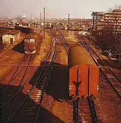 Der Bahnhof entwickelte sich in der Folgezeit zu einem der größten Rangierbahnhöfe in der DDR. Zur Erweiterung der Leistungsfähigkeit waren kontinuierlich Verbesserungsmaßnahmen notwendig. In den 1950er Jahren erhielten die Schlepplokomotiven Funkausrüstung. Im darauf folgenden Jahrzehnt führte die Deutsche Reichsbahn hydraulische Balkengleisbremsen ein und nahm den elektrischen Zugbetrieb in Richtung Karl-Marx-Stadt auf; außerdem begann der Einsatz tragbarer Funksprechgeräte. Ab 1971 eingeführte Weichenheizungen und der Umbau einiger Gleise erhöhten die Effektivität zusätzlich, so dass bis zu 5.000 Güterwagen pro Tag abgefertigt werden konnten.[13] Die Dampftraktion im Schleppdienst endete 1973/74. Dieselelektrische Lokomotiven der DR-Baureihe 120 lösten die verbliebenen Dampfloks der DR-Baureihe 58.30 ab.[7] An sozialen Einrichtungen für die Bahnbeschäftigten kamen in dieser Zeit unter anderem eine Poliklinik am Emerich-Ambros-Ufer und ein Betriebskindergarten hinzu.
