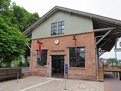 Auf der von der Seite des Empfangsgebäudes abgewandten Seite der Gleisanlagen befindet sich ein zweigeschossiges Nebengebäude aus der Zeit um 1870 mit Rundbogenfenstern im Erdgeschoss und einer Holzlattenverkleidung im Obergeschoss. Hier befindet sich der Wassertank für den Wasserkran zum Speisen von Dampflokomotiven. Er wurde betriebsfähig restauriert und 1995 wieder in Betrieb genommen, so dass hier Dampflokomotiven historisch korrekt mit Wasser versorgt werden können.[5]