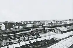 Das Bahnpostamt im Empfangsgebäude erreichte bald seine Kapazitätsgrenzen. Im Jahr 1886 entstand an der Bahnhofstraße zwischen Bahnhofsvorhalle und dem BGE-Lokschuppen für 29.000 Mark ein neues einstöckiges Bahnpostamt. 1877 wurde an der heutigen Sattigstraße zwischen Jauernicker Straße und Melanchthonstraße eine bahneigene Gasanstalt zur Leuchtgasversorgung des Bahnhofs und der Personenwagen errichtet.[11] Sie verfügte über einen eigenen Gleisanschluss zum Transport von Kohle und Abtransport von Teer über eine Wagendrehscheibe. Bis Juni 1913 blieb das Werk in Betrieb. Neben diesen bahntechnischen Einrichtungen entstanden auch kommunale Einrichtungen in unmittelbarer Nähe des Bahnhofes, z. B. der städtische Packhof an der Bahnhofstraße Ecke Salomonstraße, der am 1. Oktober 1850 mit einer Lagerfläche von 2892 Quadratmetern eröffnet wurde. Die Stadt besaß seit 1834 das Packhofrecht, also das Recht, ein von der Zollverwaltung kontrolliertes und zur Niederlage von unverzollten Waren der Kaufleute bestimmtes Lager einzurichten. Einige Kaufleute wünschten sich schon bald einen neuen Packhof näher an den Gleisen, der im Jahr 1873 als Anbau an den preußischen und österreichischen Zollschuppen den Betrieb aufnahm. Er war mit 2379 m² kleiner als der alte Packhof. Die Lagerflächen wurden mit einer dreimonatigen Kündigungsfrist vermietet. Während des Bahnhofsumbaus zwischen 1906 und 1917 musste der Packhof im Jahr 1913 wieder an seinen Ursprungsort zurückkehren.[10]