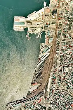 Die Bahngesellschaft Hokkaidō Tetsudō eröffnete den Bahnhof am 10. Dezember 1902, zusammen mit dem südlichsten Abschnitt der Hakodate-Hauptlinie.[2] Nach der Verstaatlichung am 1. Juli 1907 war das Eisenbahnamt (das spätere Eisenbahnministerium) zuständig. Es nahm am 7. März 1908 die Seikan-Fähre nach Aomori in Betrieb, deren Pier sich unweit des Bahnhofs befand. Angesichts der staatlichen Konkurrenz stellte die Reederei Nippon Yūsen ihren eigenen Fährbetrieb zwei Jahre später ein. Zur Verbesserung der Umsteigebeziehungen zwischen Fähre und Eisenbahn entstand im Juni 1915 etwas südlich des Bahnhofs die Haltestelle Hakodate-sanbashi (函館桟橋), die bis 1968 in Betrieb war. Der Trajektverkehr wurde am 1. August 1925 aufgenommen, nachdem Umbauten an der Pier die Verladung von Eisenbahnwaggons auf die Fährschiffe ermöglichten.[3]
