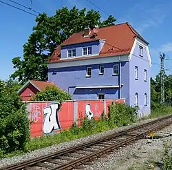 Nördlich des Empfangsgebäudes errichteten die Königlich Bayerischen Staatseisenbahnen ein eingeschossiges Nebengebäude mit Walmdach, in dem sich die Bahnhofstoiletten und eine Waschküche für die Bahnbediensteten befanden. Nach der Verlegung der Toiletten ins Empfangsgebäude diente das Nebengebäude ab den 1930er Jahren als Fahrradeinstellhalle; 1977 wurden Geschäftsräume darin untergebracht. Anfang Mai 1983 brach die Deutsche Bundesbahn das Nebengebäude ab.[18] An seiner Stelle errichtete sie bis 1985 ein eingeschossiges Gebäude mit Krüppelwalmdach für das neue Spurplandrucktastenstellwerk.