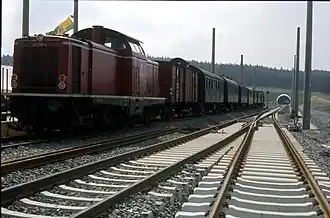 Der am 4. November 1987 begonnene Gleisbau von Fulda Richtung Norden führt zunächst bis zu dem 19 Kilometer entfernten Überholbahnhof Langenschwarz.[3]