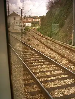 ![]() Die Verzweigung der Linha de Cintura mit dem Bahnhof Chelas im Hintergrund