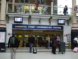 Der Bahnhof Liverpool Street ist einer der Hauptbahnhöfe von London und liegt an der gleichnamigen Straße in der nordöstlichen Ecke der City of London. Er wurde 1874 als neuer Kopfbahnhof der Great Eastern Railway eröffnet und ersetzte den bisherigen, weiter östlich gelegenen Bahnhof Bishopsgate. Der in der Travelcard-Tarifzone 1 gelegene Bahnhof wird heute überwiegend von Zügen der Gesellschaft Abellio Greater Anglia bedient. Züge verkehren in den Nordosten Londons, nach Essex und in weitere Regionen Ostenglands. Eingänge befinden sich am Bishopsgate, an der Liverpool Street selbst und beim Geschäftszentrum Broadgate (das am Standort des früheren Bahnhofs Broad Street errichtet wurde). Liverpool Street ist einer von 18 Bahnhöfen, die von der Bahninfrastrukturgesellschaft Network Rail betrieben werden. Im Jahr 2016 nutzten 67,339 Millionen Eisenbahnfahrgäste den Bahnhof, hinzu kommen weitere 71,61 Millionen Fahrgäste der U-Bahn. Zusammengerechnet ergibt dies täglich über 380.000 Personen.[1][2]
