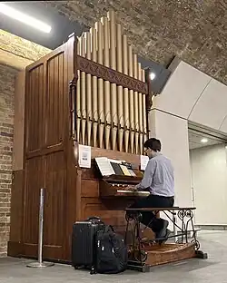 Nachdem die Kirche 2020 geschlossen worden war, wurde das Instrument 2022 auf Betreiben der Initiative „Pipe Up for Pipe Organs“ des Orgelbauers Martin Renshaw in dem Bahnhof aufgestellt. Ziel dieser Initiative ist es, auf den Verlust von Orgeln aus geschlossenen Kirchen im United Kingdom aufmerksam zu machen. Die Orgel kann von jedermann gespielt werden. Das Instrument hat sechs Register auf einem Manual (Open Diapason Front 8', Open Diapason Treble 8', Rohr Flute 8', Gamba 8', Principal 4') und Pedal (Bourdon 16') und eine Pedalkoppel.[4]