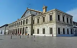 Das Bahnhofsgebäude wurde 1848 in Form eines die Gleise umfassenden U erbaut, es gab einen Flügel für die ankommenden und einen für die abfahrenden Fahrgäste. Diese zwei Flügel wurden durch ein Glasdach zu einer Bahnhofshalle verbunden.