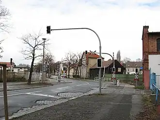 Notwendige Sanierungsarbeiten an den weiter nordöstlich gelegenen Bahnübergängen scheiterten lange Zeit an dem Willen und der Mitfinanzierung der Deutschen Bahn. So war beispielsweise die Magdeburger Straße (ehemals B6, heute Zubringer zur B6n) mit beidseitig angelegten Fuß- und Radwegen bis auf den Bereich des Bahnüberganges voll saniert. Durch die fehlende Sanierung kam es zum Umstand, dass Fußgänger und Radfahrer die Straße benutzen müssen, wobei nur auf der nördlichen Seite ein Trampelpfad existiert und Fußgänger die stark befahrene Straße queren müssen. Gleichzeitig war dies bis Ende 2013 der letzte noch von einem Schrankenwärter handbediente, vollbeschrankte Bahnübergang. Von diesem Schrankenwärterhäuschen wurde zuletzt die Vollschranke im Badeborner Weg elektronisch bedient. Die Bahnübergänge Magdeburger Straße, Badeborner Weg und Frachtstraße sollten im Frühjahr/Sommer 2013 im Rahmen des Blinklichtprogramms neu gestaltet werden.[20] Eine Umsetzung des Planes erfolgte erst Ende 2013. Hierbei wurden die nordöstlich vom Bahnhof gelegenen Bahnübergänge mit automatischen Halbschranken mit Lichtzeichen versehen. Dafür musste das letzte Schrankenwärterhäuschen in der Magdeburger Straße abgerissen werden. Die letzten Vollschranken mit Blinklicht wurden im November 2021 durch eine moderne Wechsellichtanlage ersetzt.