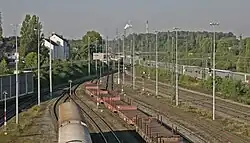 - ↑ Foto des Bahnhofs mit Straßenbahn