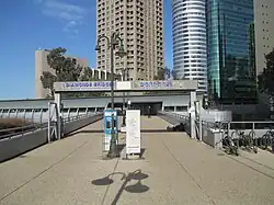 - ↑ a b c d David Chajun (דָּוִד חָיוּן), „נפתח הגשר להולכי רגל בין תחנת רכבת צפון לבורסה בר"ג“ (18. November 1999), auf: גְּלְוֹבְּס (Globes); abgerufen am 4. Oktober 2022.