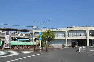 An die Westseite des Viadukts angebaut ist ein zweigeschossiges Empfangsgebäude. Es enthielt zu Beginn eine Filiale der zur Meitetsu Group gehörenden Supermarktkette Meitetsu Palais (ursprünglich Meitetsu Store), der jedoch im Jahr 2000 geschlossen wurde; nur die Geschäfte (Convenience Shops) rund um die Fahrkartenschalter im Erdgeschoss sind übrig geblieben. Die nicht mehr genutzten Supermarktflächen werden als Fahrradabstellplatz und gelegentlich für Veranstaltungen genutzt.
