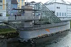 ![]() Oberirdisches «Schiff» im Flussbett der Sihl, nördlicher Zugang zum unterirdischen Bahnhof (2009)