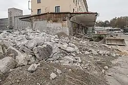 Das halbrunde Vordach der ehemaligen Postbusabfahrtsstelle und das ehemalige ABC-Buffet wurden im November 2018 abgebrochen.