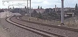 ![]() Gleis Schönhauser Allee – Bornholmer Straße in Höhe des Schwedter Stegs, 2014. Das Gleis der Gegenrichtung führt parallel dazu nicht sichtbar durch ein Tunnelbauwerk. | |||||||||||||||||||||||||||||||||||||||||||||||||||||