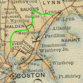 Die Strecke führt größtenteils durch bebautes Gebiet der Städte Everett, Malden, Saugus und Lynn. Da die Bahnstrecke noch bis in 1990er Jahre genutzt wurde, ist die Trasse dennoch größtenteils erhalten. An vielen Stellen wurden nach der Stilllegung Parkplätze auf der Bahnstrecke errichtet. Sie zweigt in Everett aus der Bahnstrecke Boston–Revere ab und führt zunächst nach Norden. Nahe dem früheren Haltepunkt an der West Street werden noch einzelne Güterkunden bedient. Die stillgelegte Trasse biegt bei Bell Rock in Richtung Osten ab und führt kurvenreich über Saugus und Lynn Common nach West Lynn, wo sie in die Bahnstrecke East Boston–Portsmouth einmündet. Auf der Strecke zwischen Bell Rock und West Lynn befanden sich auf acht Bahnübergängen Gleiskreuzungen mit verschiedenen Straßenbahnstrecken.