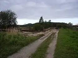 Nach Ende des Zweiten Weltkriegs wurde die Strecke durch die Oder-Neiße-Grenze geteilt, der Abschnitt östlich der Neiße kam zu Polen. Bald nach 1945 wurden beiderseits der Lausitzer Neiße die Gleise abgebrochen. Nördlich des Ortes Radomierzyce erinnert noch der alte Bahndamm an die Verbindung über die Neiße. Auch Reste der Neißebrücke sind noch erhalten. Der nunmehr polnische Bahnhof Zawidów (ehemals Seidenberg) besaß zunächst keine direkte Anbindung an das übrige polnische Eisenbahnnetz. 1948 wurde darum die ehemalige Kleinbahn Schönberg–Nikolausdorf (Sulików–Mikułowa) nach Zawidów verlängert. Eröffnet wurde die Neubaustrecke am 3. Oktober 1948. Am 19. Mai 1949[3] ging eine neue Verbindung zur Neißetalbahn in Richtung Süden in Betrieb, um einen durchgängigen Zugverkehr zum im Aufbau befindlichen Kraftwerk Turów in Turoszów und ab 1960 weiter nach Bogatynia zu ermöglichen. Diese nutzt auf etwa zwei Kilometer Länge vom Abzweig Wilka 1 bis östlich von Radomiercze die alte Strecke. Auch der Abschnitt von Zawidów nach Wilka 1 blieb in Betrieb, so dass Zawidów auch in Richtung Turoszów angebunden ist. Die grenzüberschreitende Verbindung über Zawidow in die Tschechoslowakei wird seitdem nur für den Güterverkehr genutzt, der Reisezugverkehr wurde nicht wieder aufgenommen.