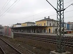 Restauriertes Empfangsgebäude des ehemaligen Bahnhofs Grimma unt Bf (Juni 2009)