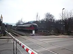 Triebwagen der Erzgebirgsbahn am Bahnübergang Schwarzenberg (2016)