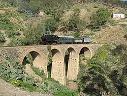 Die Bahnstrecke Massaua–Biscia (italienisch Ferrovia Massaua–Biscia) ist eine Schmalspurbahn mit einer Spurweite von 950 mm in Eritrea. Sie führt heute von der Hafenstadt Massaua nach Asmara und reichte früher weiter bis Biscia (Bischia). Die Strecke hatte zu Kolonialzeiten große wirtschaftliche und militärische Bedeutung. Im Eritreischen Unabhängigkeitskrieg wurde sie so sehr beschädigt, dass der Betrieb 1976 eingestellt werden musste.[3] 1995 begann der nun unabhängige eritreische Staat mit ihrem Wiederaufbau zwischen Massaua und Asmara. Derzeit wird die Strecke nur für touristische Zwecke genutzt. Es bestehen Ausbaupläne.