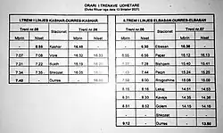 - ↑ a b c d e f g Gerhard Gürsch: Mit Bus und Bahn durchs Land der Skipetaren. Bufe-Fachbuch-Verlag, Egglham 1986, ISBN 3-922138-28-4, S. 78 f.