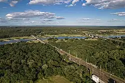 Blick auf die Bahnstrecke in Frankfurt (Oder) und die Oderbrücke Frankfurt Richtung Słubice