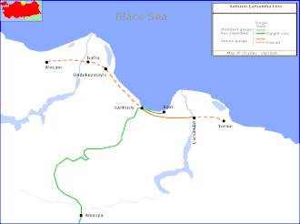 ![]() Streckenverlauf Samsun–Çarşamba (orange) | |||||||||||||||||||||||||||||||||||||||||