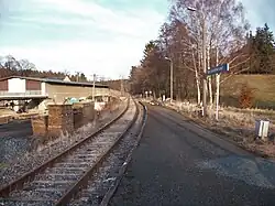 Die im Bahnhofsbereich liegende Straßenkreuzung mit der heutigen B 282 erhielt in den 1950er Jahren eine Schrankenanlage. Erste Rückbauten erfolgten Ende der 1960er Jahre, als ein Stumpfgleis ausgebaut sowie die restlichen Gleise mit Gleissperren gesichert wurden. Ende der 1990er Jahre wurden die Gleisanlagen bis auf das durchgehende Streckengleis abgebaut und der Bahnhof zum unbesetzten Haltepunkt zurückgestuft.[21]