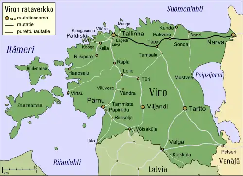 | Zweigleisigkeit: | Tallinn–Tapa | ||||||||||||||||||||||||||||||||||||||||||||||||||||||||||||||||||||||||||||||||||||||||||||||||||||||||||||||||||||||||||||||||||||||||||||||||||||||||||||||||||||||||||||||||||||||||||||||||||||||||||||||||||||||||||||||||||||||||