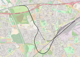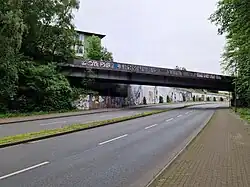 Die Güterzugstrecke ist als elektrifizierte Hauptbahn in Betrieb. Auf der Personenzugstrecke sind die Gleise demontiert; die Brücken über die Berliner Straße, die Wakefieldstraße, die Straße Am Mühlenbach, die Wilhelmstraße und die A 42 sind noch erhalten.
