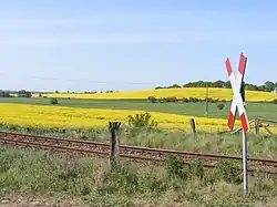 Kreuzung geradeaus oben (Strecke geradeaus außer Betrieb)Strecke von rechts