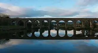 Am 6. September 1886 wurde der Bahnhof von Ballydehob mit einem großen Fest und zahlreichen Sportveranstaltungen eröffnet.[4] Der Bahnhof lag an der Strecke der Schull and Skibbereen Railway, einer Schmalspurbahn, die zu dieser Zeit in dieser Gegend eine Geschwindigkeitsbegrenzung von 15 Meilen pro Stunde einzuhalten hatte. Eine steinerne Brücke mit 12 Bögen führte über das Mündungsgebiet des Flusses und dient heute als Touristenattraktion und Aussichtspunkt. Der Rückgang des Kupferbergbaus und Kohleknappheit führten zur Schließung der Strecke. Der letzte Eisenbahnzug rollte am 27. Januar 1947 durch den Ort. Der Bahnhof wurde am 1. Juni 1953 aufgelassen.