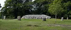 Der den Hügel umgebende Steinkreis besteht aus zehn Monolithen, die zwischen 24 und 28 Fuß (etwa 7,3 bis 8,5 Meter) vom Rand des Hügels entfernt stehen.[6] Drei von ihnen waren im 19. Jahrhundert umgefallen und wurden 1876 wieder aufgerichtet. Zwei Steine mussten wegen des Baus der heutigen Zufahrtsstraße versetzt werden und stehen nicht mehr an ihrer Originalposition.