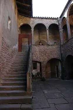 - Das im Innern zweigeschossige, etwa 420 Meter hoch gelegene und im 14. und 15. Jahrhundert, d. h. in der Zeit der Spätgotik erbaute Kastell von Balsareny hat einen ansatzweise fünfeckigen Grundriss und zeigt nach außen ein aus vergleichsweise exakt bearbeiteten Hausteinen und in regelmäßigen Lagen gemauertes Mauerwerk; die gut einen Meter dicke Wände bestehen allerdings größtenteils aus Füllmaterial. Der gotische Wehrbau (donjon) hat einen umlaufenden Wehrgang mit leicht vorkragendem Zinnenkranz als oberem Abschluss. Die von Zweier- und Dreierfenstern (Biforien und Triforien) belichteten Räume gruppieren sich um einen Innenhof mit einem zentralen Ziehbrunnen. Die Räumlichkeiten der Burg sind nicht gewölbt, sondern werden von hölzernen Balkendecken überspannt. Die Burg wird heute als Museum genutzt.