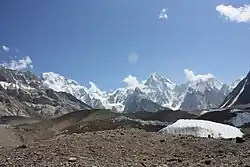 ![]() Das Baltoro Muztagh oberhalb und rechts des Baltoro-Gletschers | |