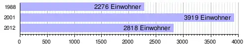 Im Hauptort lebten bei der Volkszählung 2012 2818 Einwohner in 490 Haushalten,[2] bei der Volkszählung 2001 3919 in 575 Haushalten[13] und bei der Volkszählung 1988 2276 in 348 Haushalten.[14]