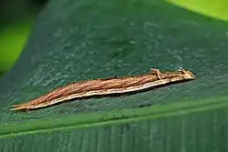Die Raupen haben die typischen Merkmale der Tribus Brassolini, eine Kopfkapsel mit mehreren, teilweise verzweigten, Dornen und einen auffällig gegabelten Schwanz. Auf dem Rücken befinden sich mehrere kurze dreieckige Stacheln, was sie von den ähnlichen Raupen der Gattung Opsiphanes unterscheidet. In den ersten Stadien sind die Raupen grün, später färben sie sich braun. Im letzten Stadium können sie ein Gewicht von 16 Gramm erreichen.